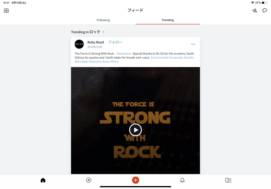ホーム画面の真ん中下の「+」ボタンをタップ。