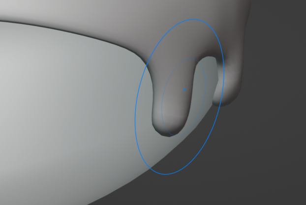 Icing /オブジェクトモード/右モディファイアプロパティ/モディファイアを上から順に3つ全て適用(Ctrl+A)/上Sculpting /左グラブ/半径(F):170、強さ(Shift+F):0.47 /ソースの波々引っ張り出し膨らみをつける/左インフレートで雫に膨らみをつける/右アクティブツールとワークスペースの設定/ストローク方法/スペースにするとクリックするたびに変化する、エアブラシにするとクリックし続けると変化し続ける。今はとりあえずスペースにセット/