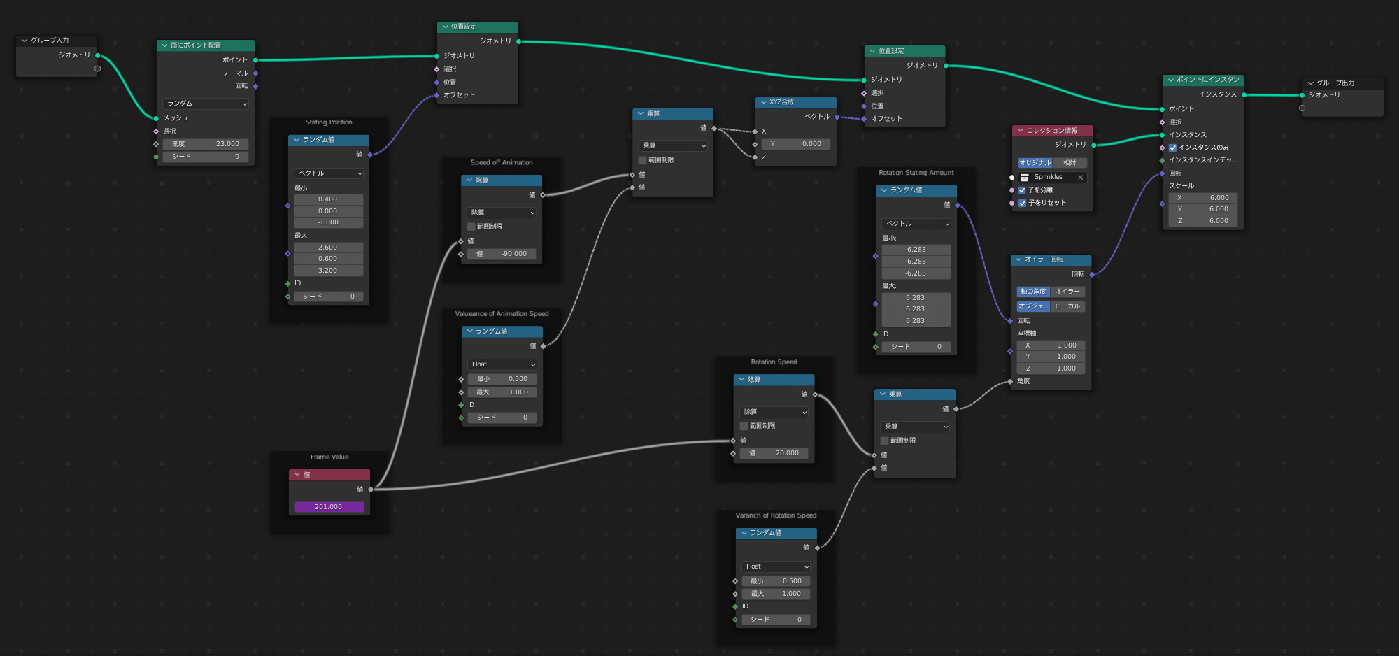 ↑↑↑ この項でのGeometry Nodeの完成形 ↑↑↑